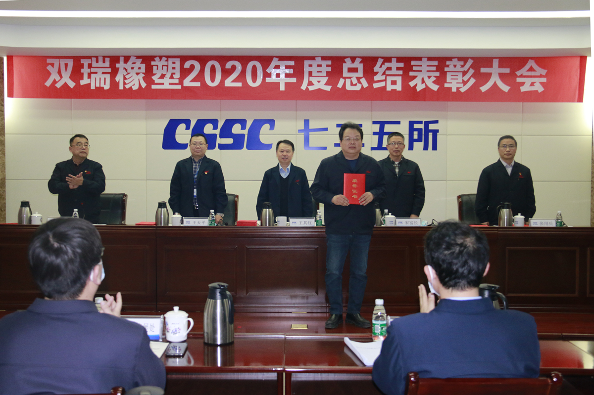 2021年2月5日,雙瑞橡塑召開(kāi)2020年工作總結(jié)表彰大會(huì),七二五所所長(zhǎng)王其紅、副所長(zhǎng)宋富長(zhǎng)、總會(huì)計(jì)師王天平出席會(huì)議并發(fā)表講話。